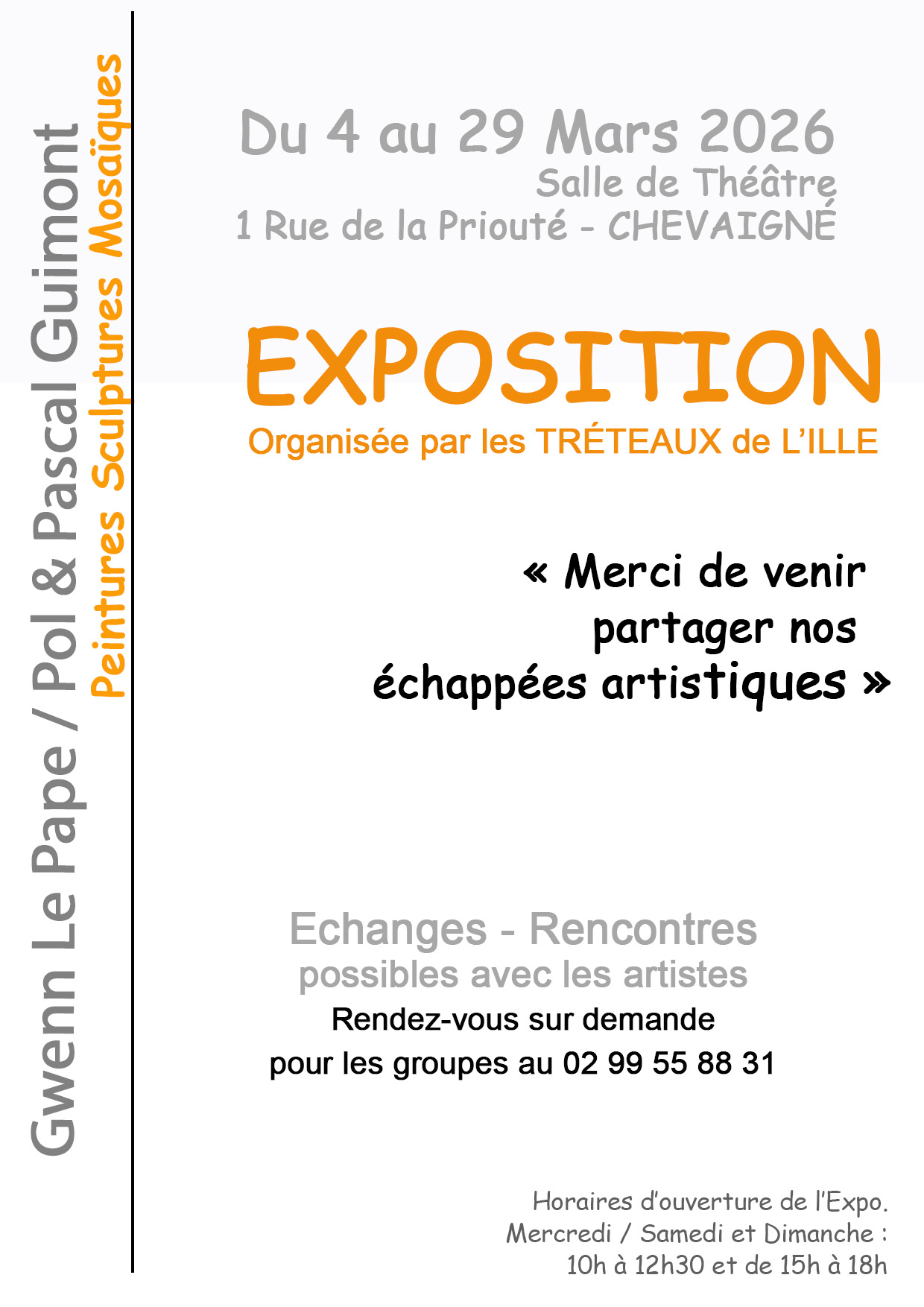 Après leur le succès du » Mal de Maires » au théâtre, les TRETEAUX DE L’ILLE mettent en scène une Expo de peintures qui guidera les visiteurs , entre autres , en » Mer de Bretagne » et » Mer de Norvège » sous les pinceaux de Gwenn LE PAPE peintre rennais invité